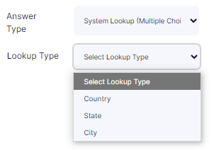 - Type – Select an appropriate answer type from the options available in the pre-populated dropdown list against each entered question. The available answer types are as follows: