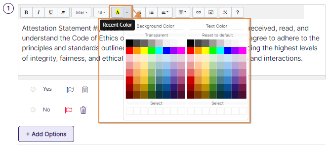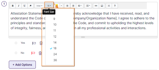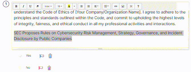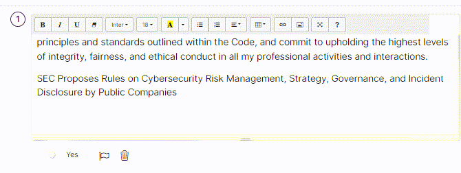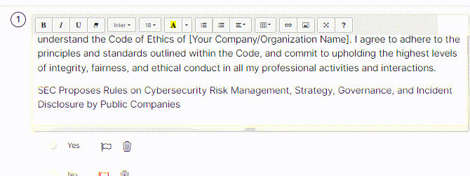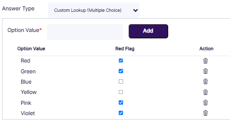 - For single choice-type questions, you can choose red flags for each choice by clicking on the flag icon or delete an option by clicking on the delete icon.